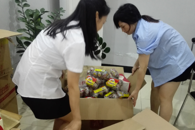 負責領取的前臺小周清點、簽名忙的不亦樂乎,這不,財務部的美女們熱心幫忙分發(fā)啦!