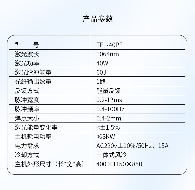 1、該設(shè)備采用升壓電源,不受電網(wǎng)波動(dòng)影響,同時(shí)電源的單點(diǎn)能量輸出能力也更強(qiáng)。