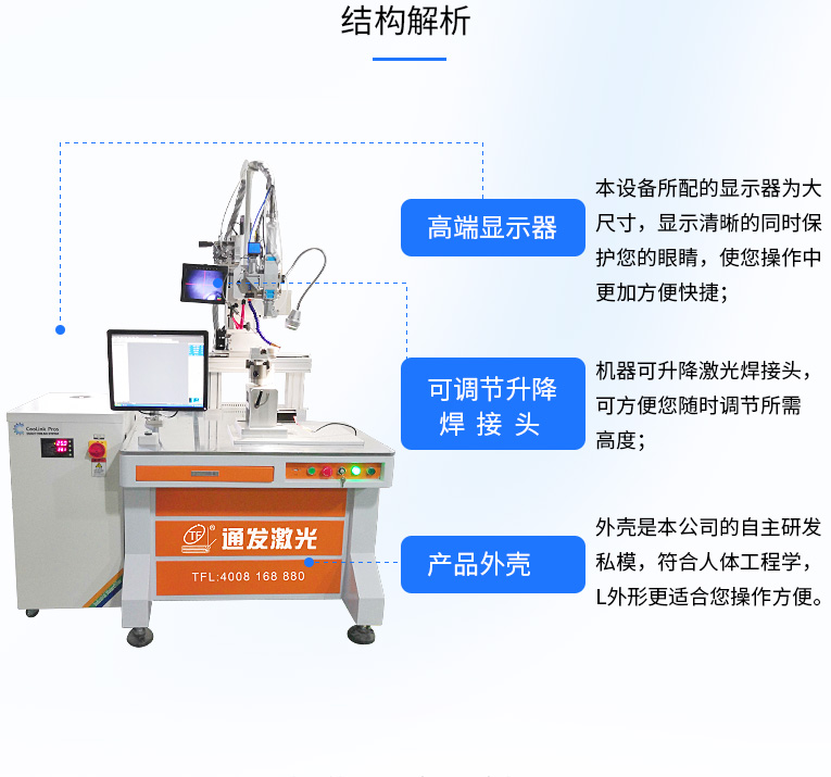2、強(qiáng)大的PC控制,易于編程、調(diào)試和維護(hù)??赏瓿勺詣?dòng)或半自動(dòng)的點(diǎn)焊、對(duì)接焊、疊焊、密封焊,針對(duì)復(fù)雜的平面直線、圓弧及任意軌跡的焊接。