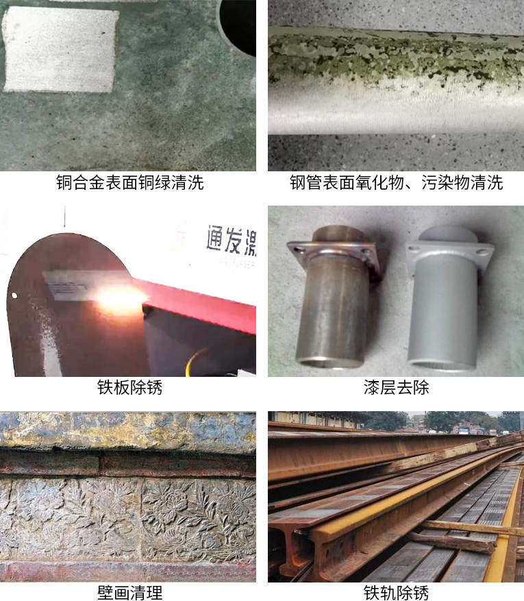 激光清洗具有無研磨、非接觸特點,不但可以用來清洗有機的污染物,也可以用來清洗無機物,包括金屬的銹蝕、金屬微粒、灰塵等,應(yīng)用功效包括:除銹、脫漆、去油污、文物修復(fù)、除膠、去涂層、去鍍層。適用于銹層、漆層較厚,油污較深的情況下清潔,以及表面粗糙化、焊縫清潔等工藝環(huán)節(jié),效率極高。應(yīng)用行業(yè):航空、船舶、文物保護、汽車周邊、食品行業(yè)、軌道、橡膠模具、其他。